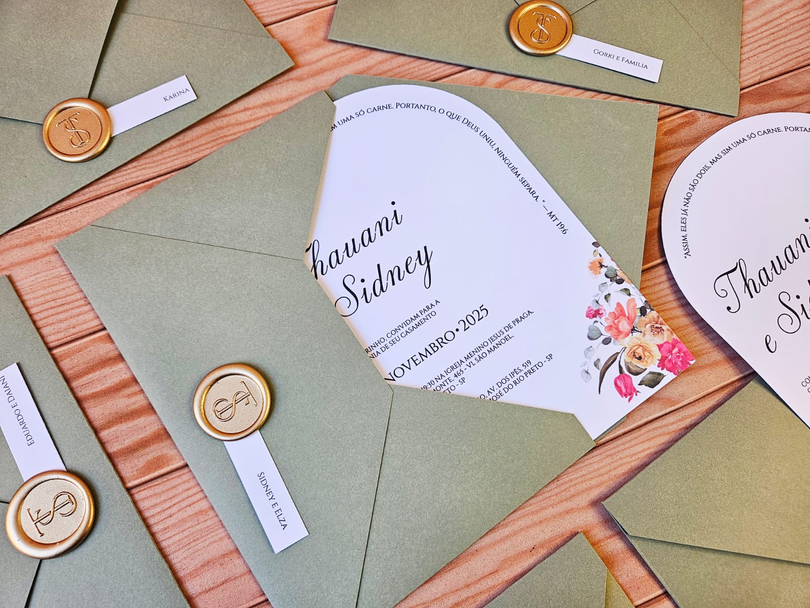 O que pode ser alterado: Texto, cores dos detalhes, cor do envelope, estampa e também podemos utilizar sua identidade visual.